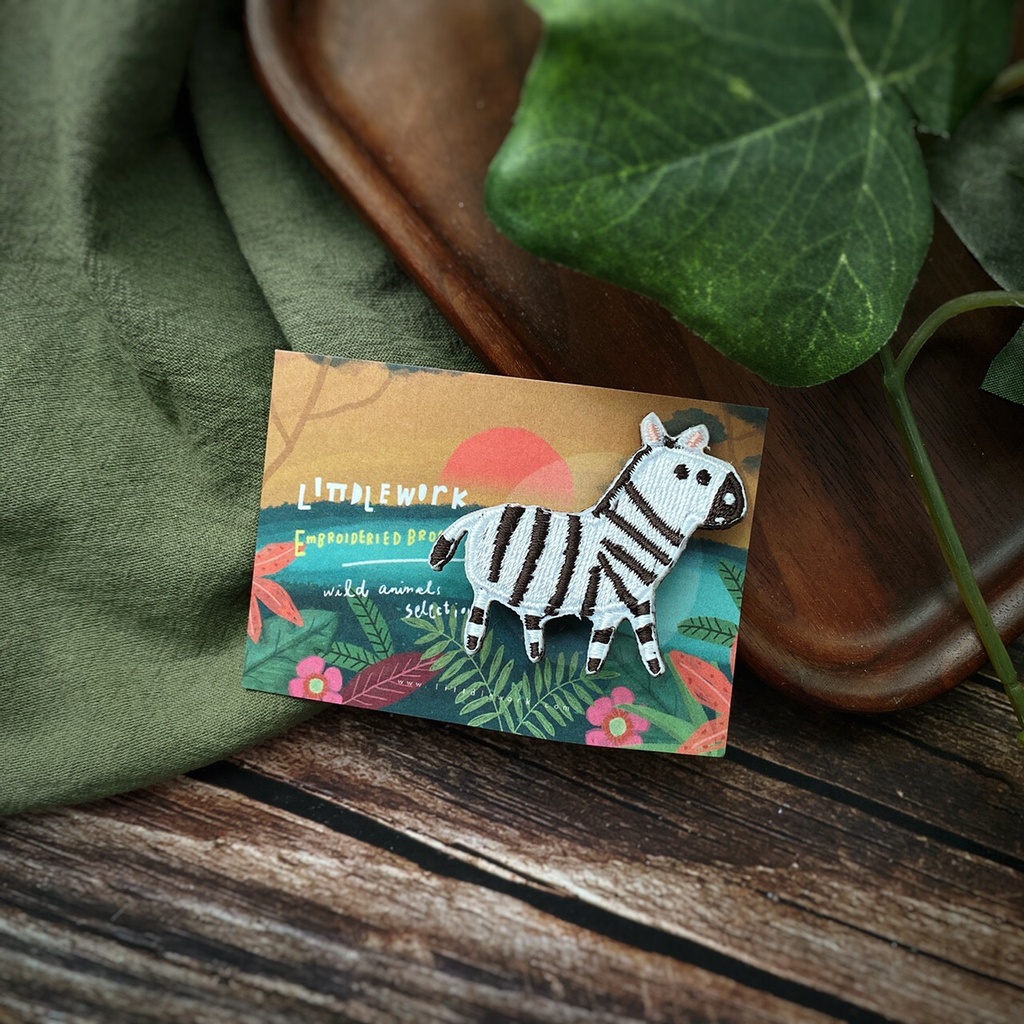 【Littdlework旗艦館】刺繡燙貼/別針 - 斑馬
