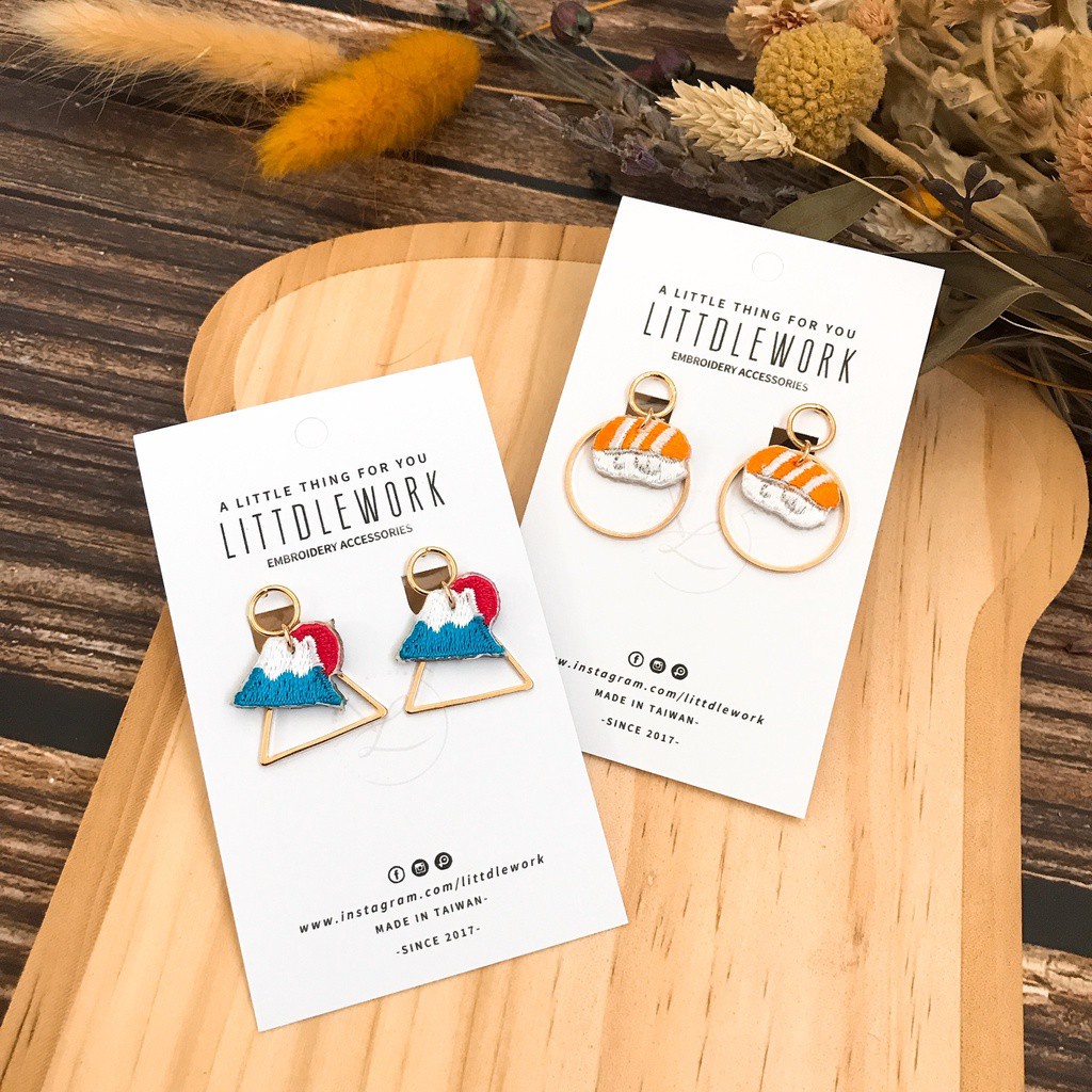 【Littdlework旗艦館】刺繡耳環 - 富士山