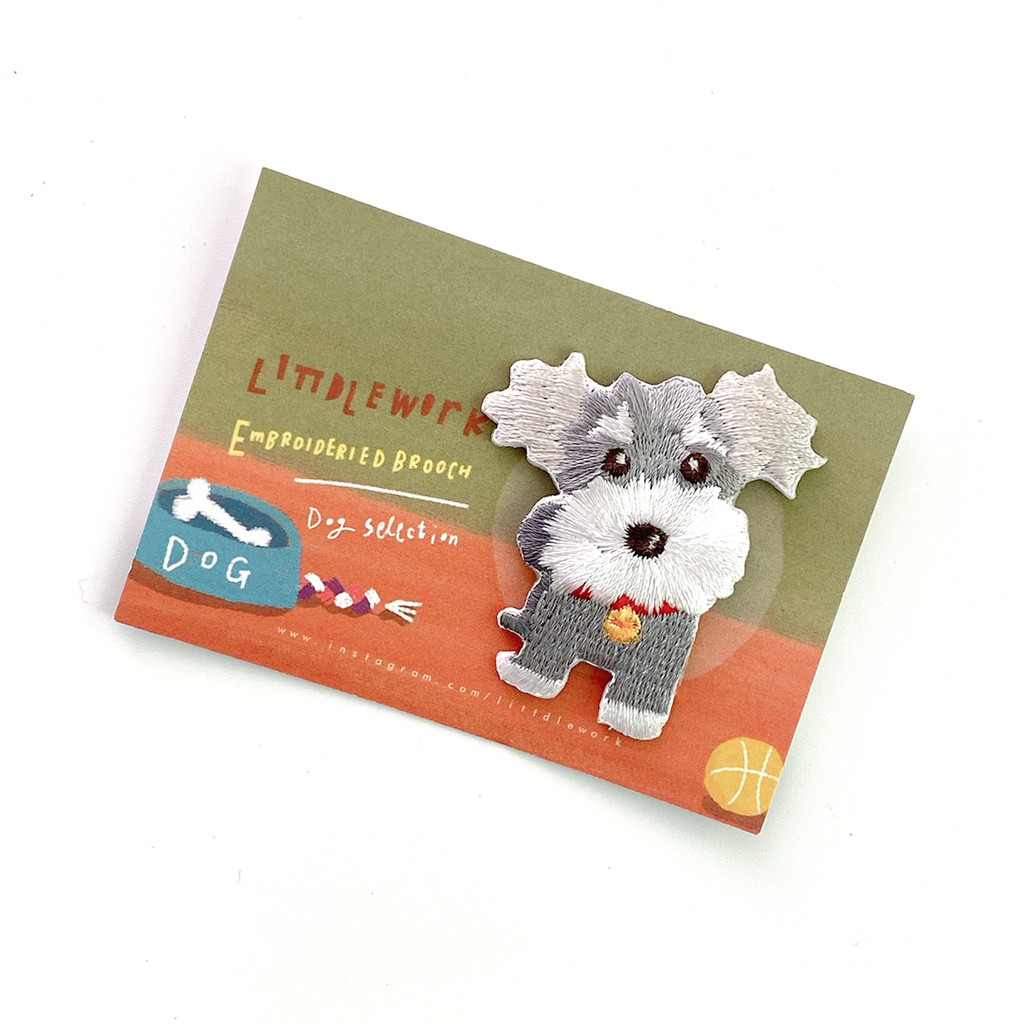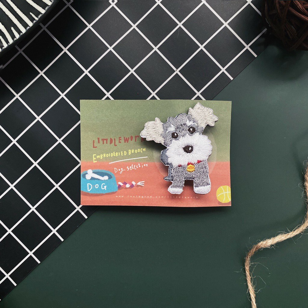 【Littdlework旗艦館】刺繡燙貼/別針 - 雪納瑞
