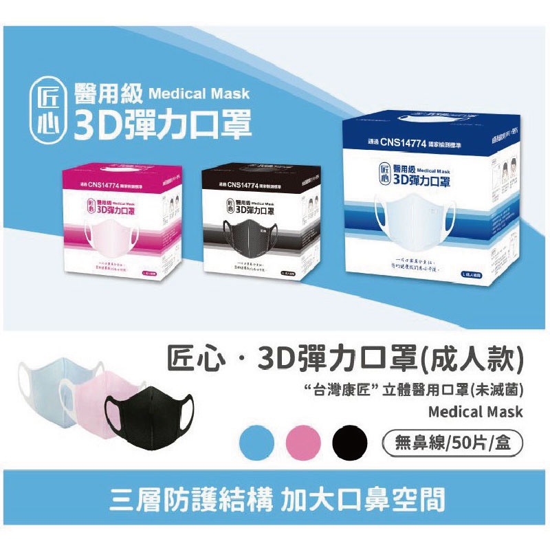 台灣康匠 3D彈力醫用口罩(未滅菌) / 50入【100圖書文具生活館】