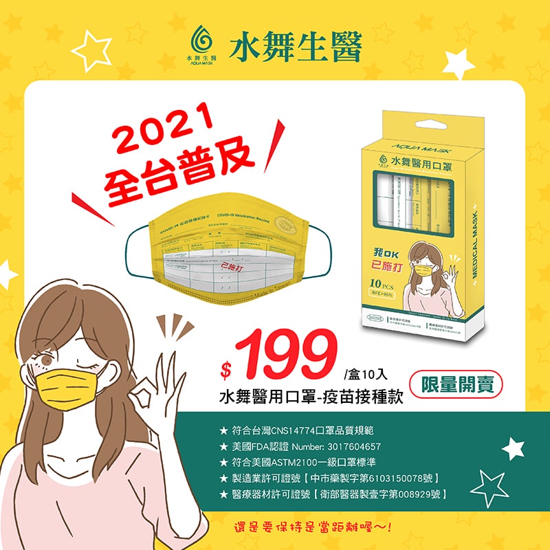 水舞生醫 醫用級成人平面口罩(未滅菌) / 疫苗接種 / 10入【100圖書文具生活館】