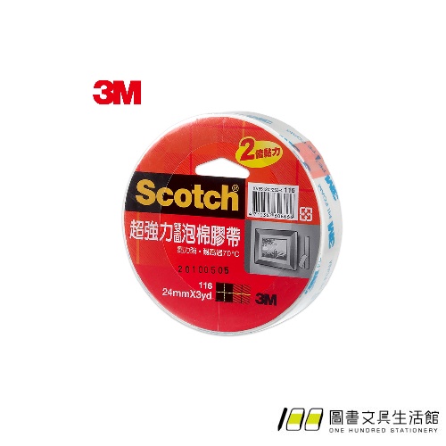 3M / 116 / 超強力雙面泡棉膠帶【100圖書文具生活館】