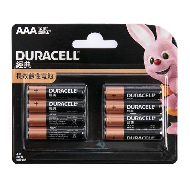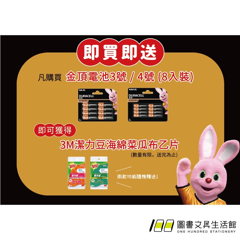 金頂 DURACELL / 經典長效鹼性電池8入 / 3號 4號 (買一卡即送3M潔力豆菜瓜布)【100圖書文具生活館】