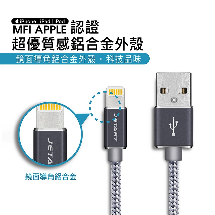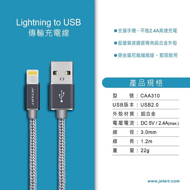 JETART / Lightning to USB 編織認證線 1.2米 / CAA310【100圖書文具生活館】