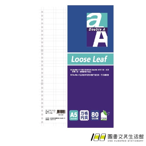 Double A / 活頁紙 / 方格內頁 / A5 / 20孔【100圖書文具生活館】
