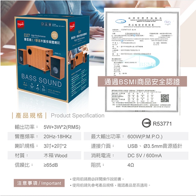E-books / 重低音2.1聲道木質多媒體喇叭 / D27【100圖書文具生活館】