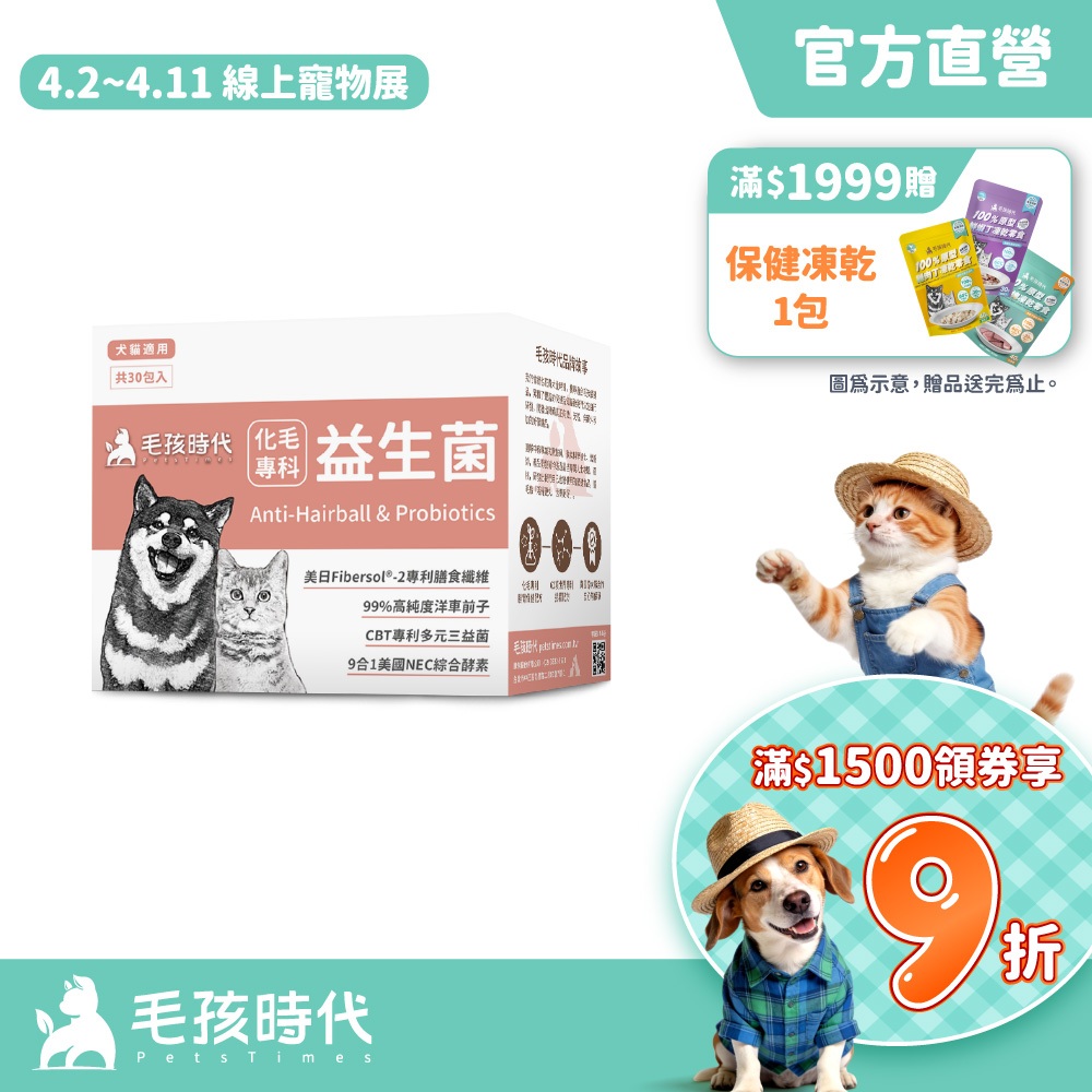 【毛孩時代】犬貓適用-化毛專科益生菌<30包/盒>貓狗化毛腸胃保健-專利益生菌+天然綜合酵素+洋車前子-官方直營