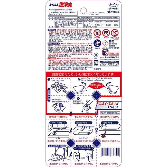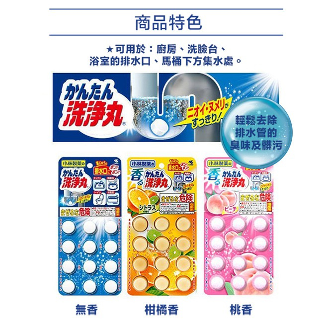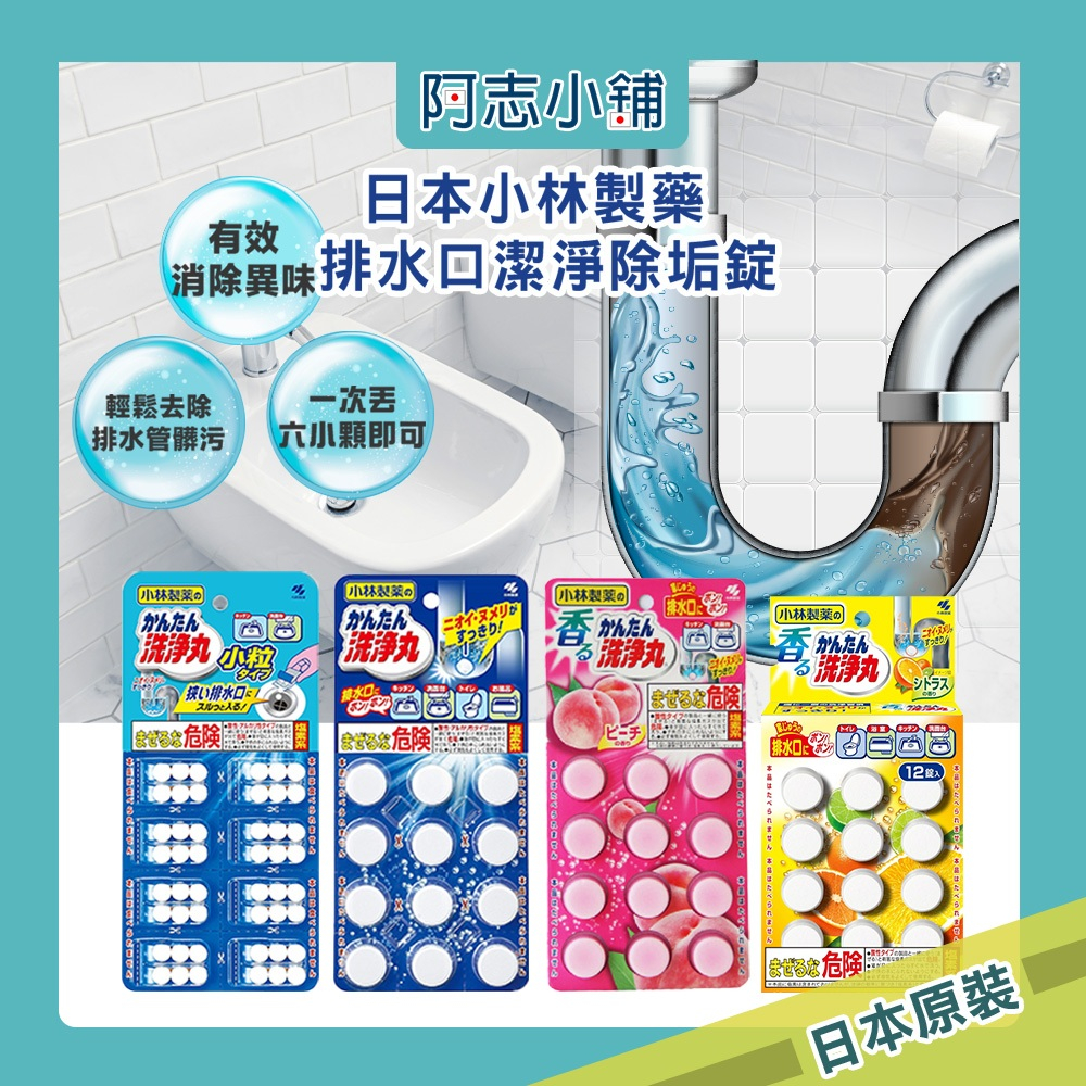 日本 小林製藥 排水口 潔淨芳香發泡錠 12枚入 除垢錠 大粒 小粒 洗淨丸 排水管 阿志小舖