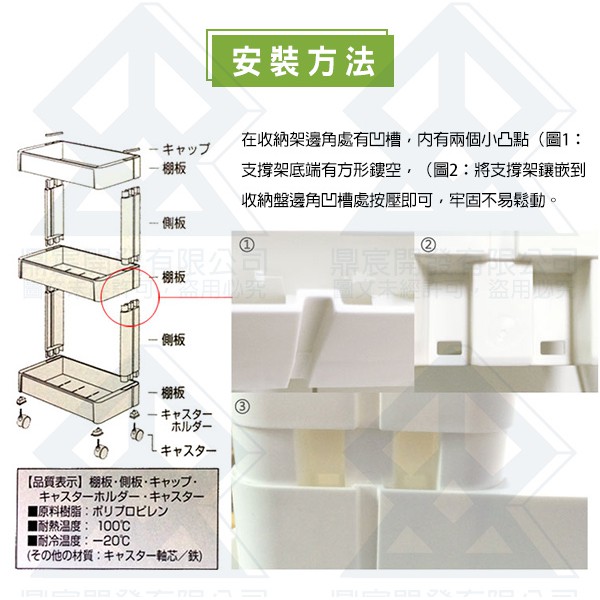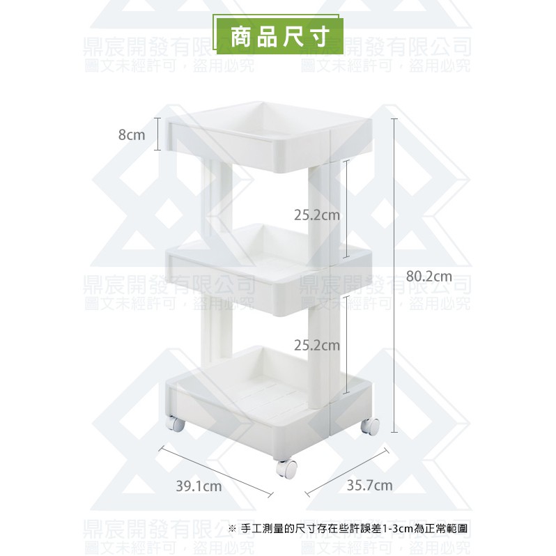 日本FUDOGIKEN 長39.1寬35.7高80.2公分 三層移動式收納架(附滾輪) F2590 阿志小舖
