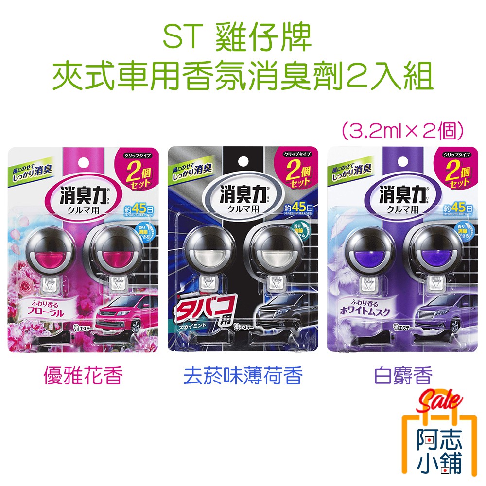 日本 ST 雞仔牌 夾式 香氛 消臭劑 2入組 (3.2ml×2個) 去菸味薄荷香 優雅花香 白麝香 汽車 阿志小舖