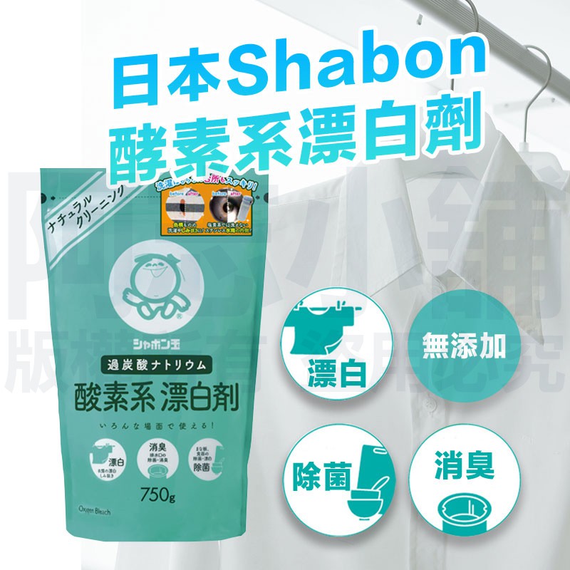 日本 Shabon 無添加酵素含氧漂白粉 750g 漂白劑 漂白粉 消毒 除臭 去污 玉石鹼 阿志小舖