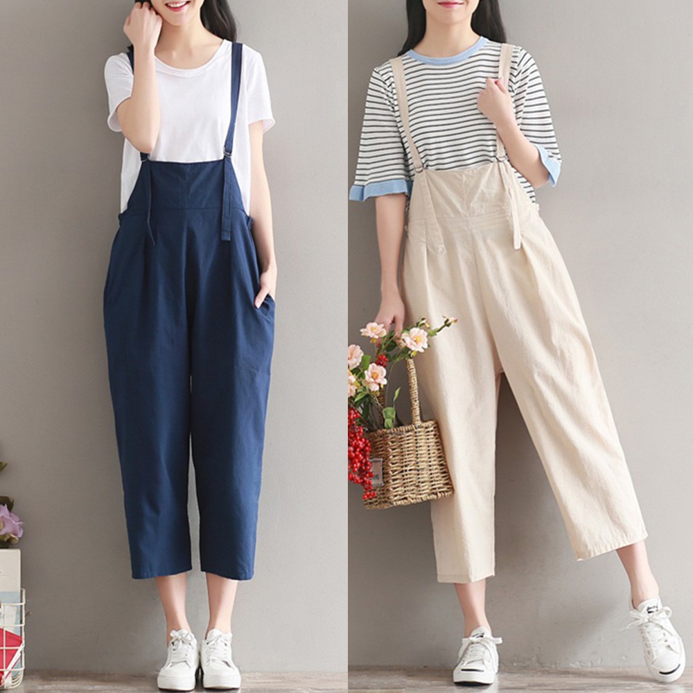 【ACheter】簡約素色吊帶九分褲100027