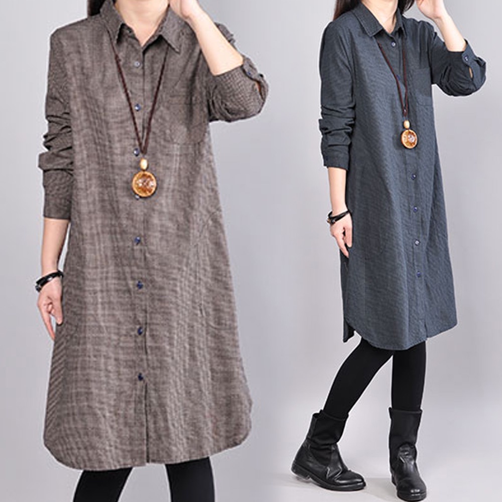 【ACheter】韓版棉質簡約藝術學院風細格長版襯衫102980