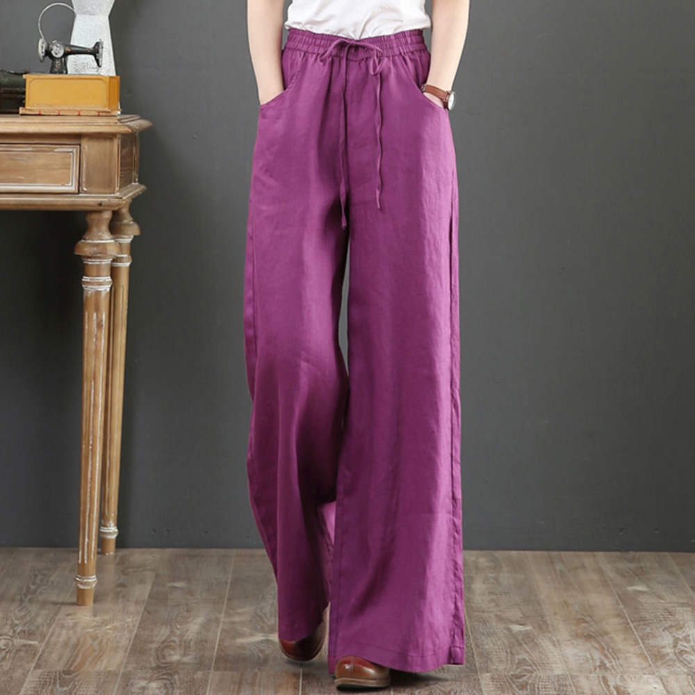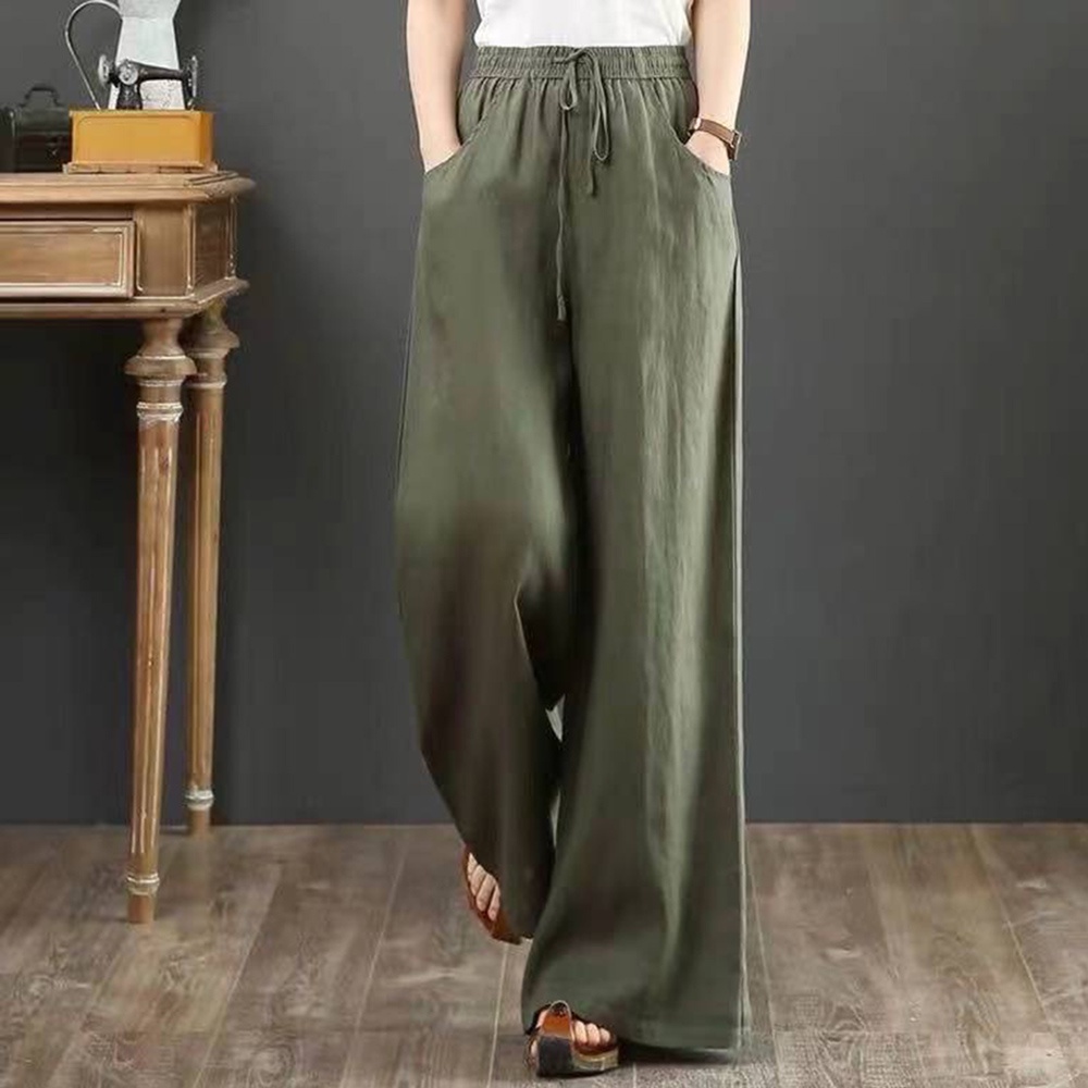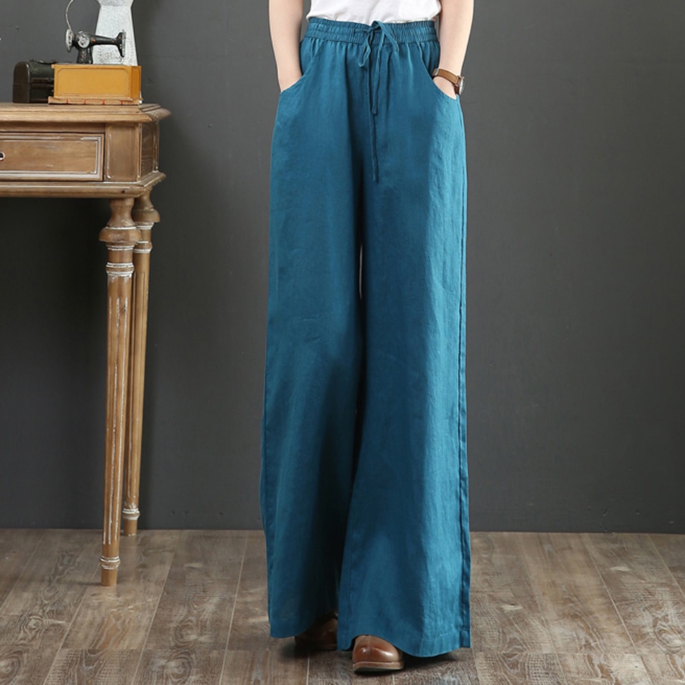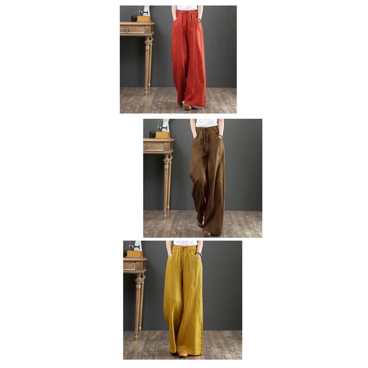 【ACheter】 夏文藝棉麻寬鬆大碼闊腿高腰拖地褲# 112630