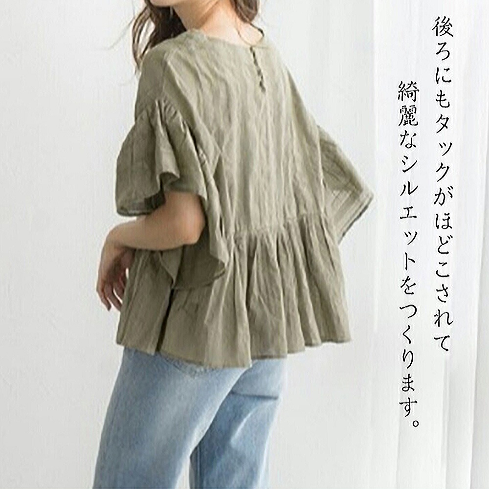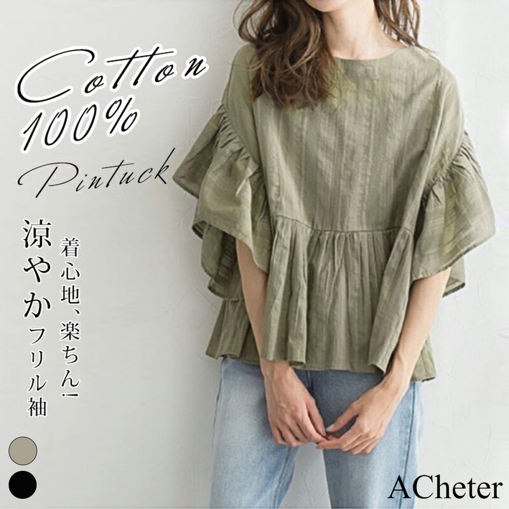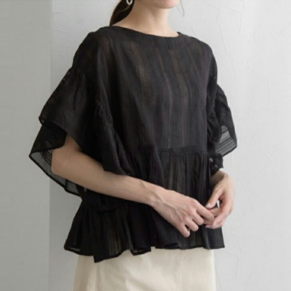 【ACheter】韓風ins荷葉袖短休閒A字下擺寬鬆中長版上衣#113445現貨+預購(2色)