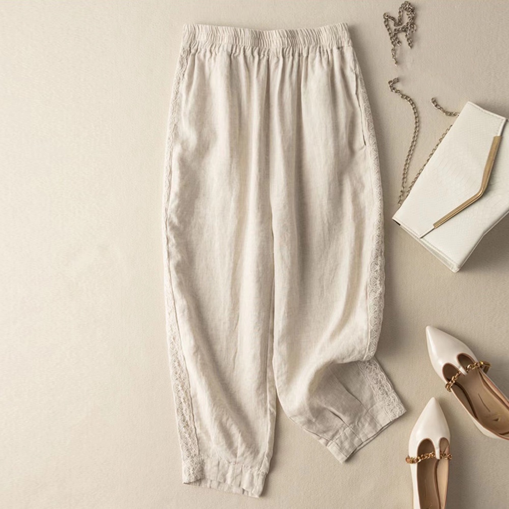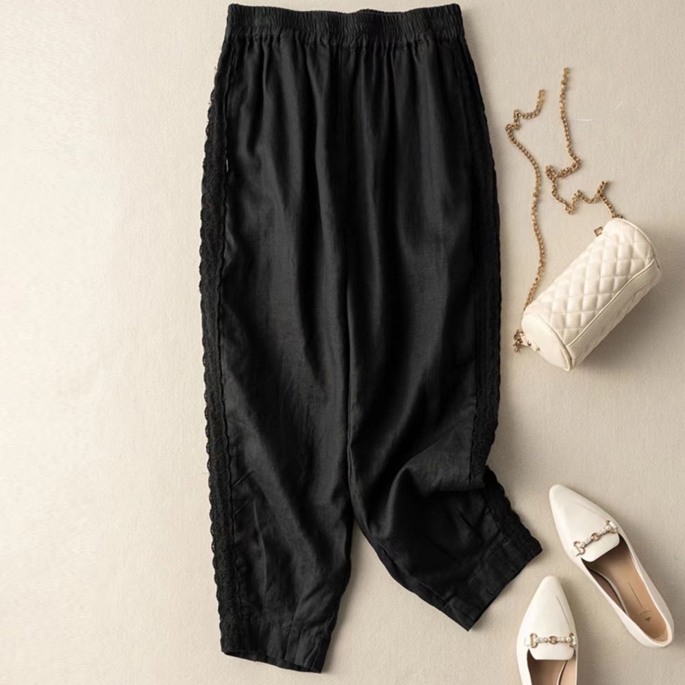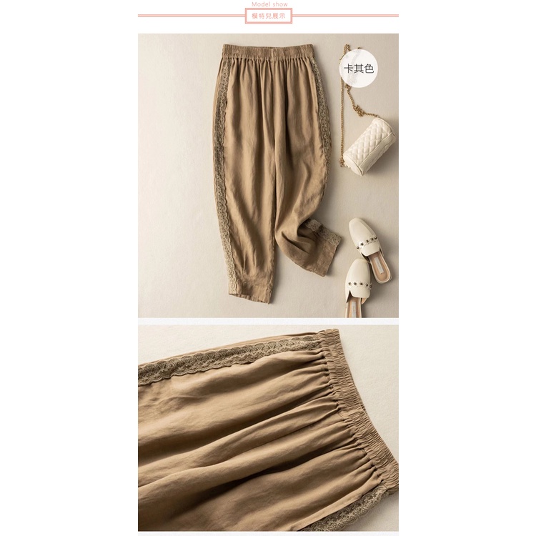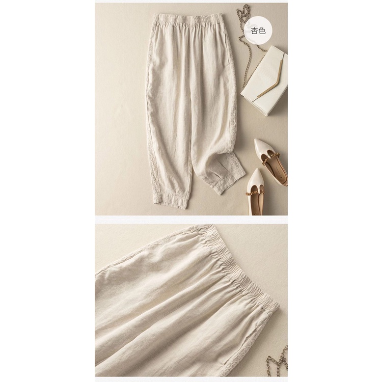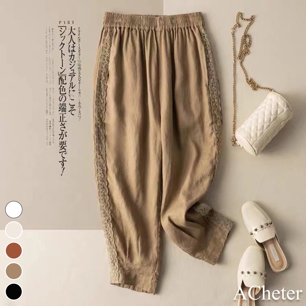 【ACheter】 垂感棉麻布蕾絲拼接小腳哈倫褲# 113001