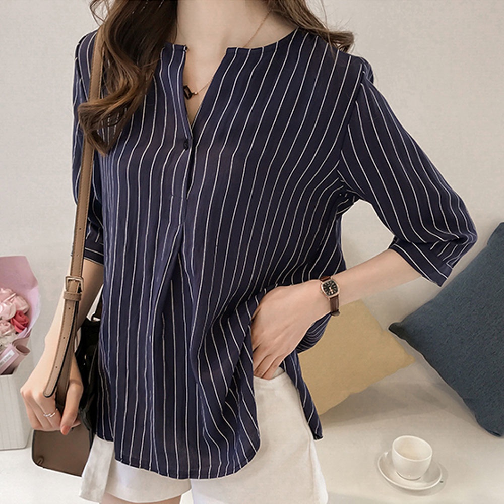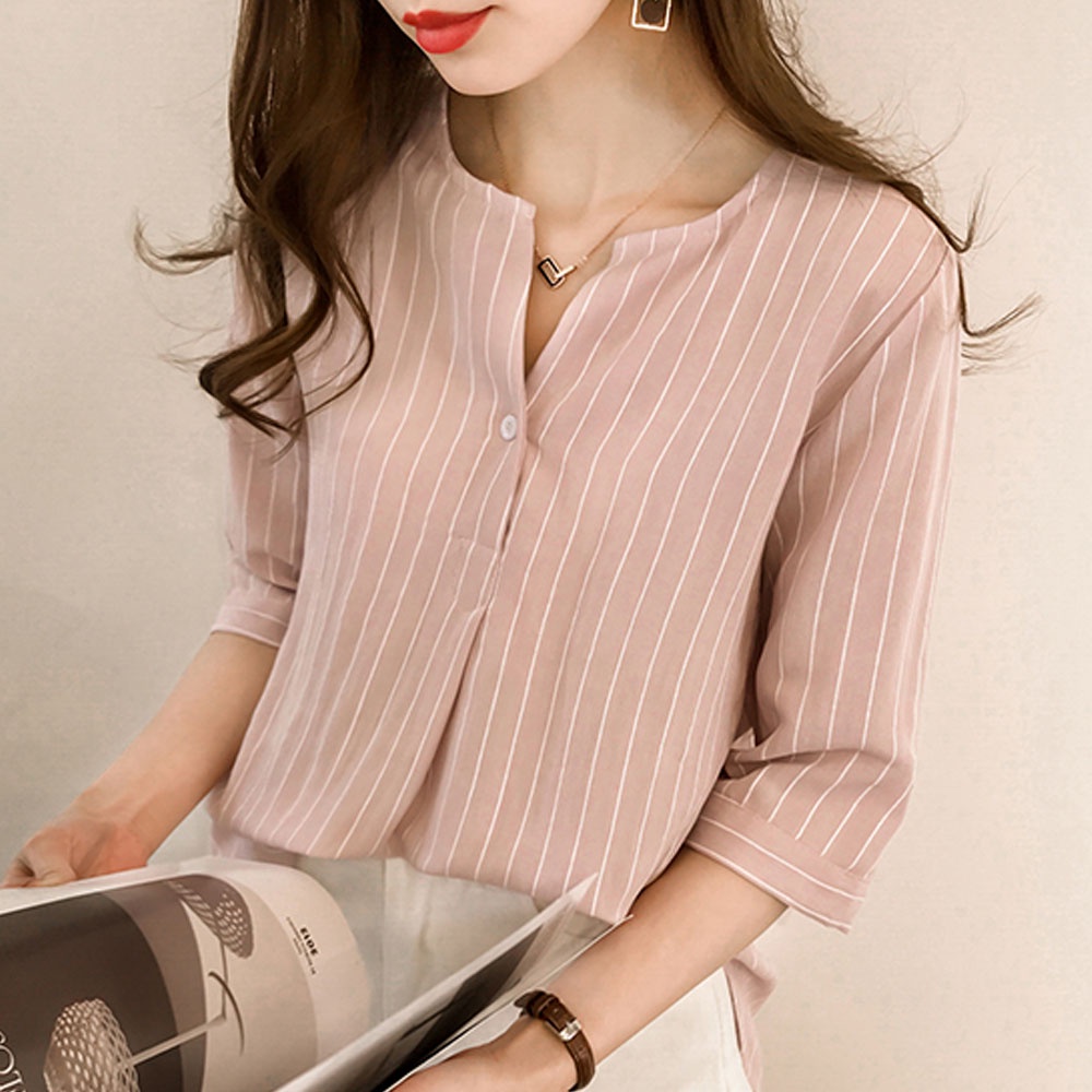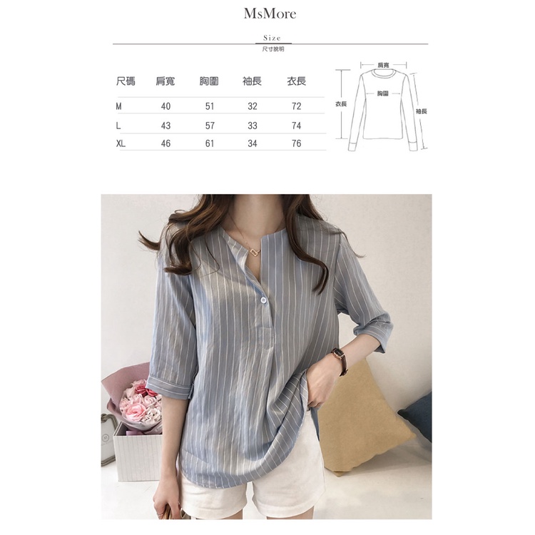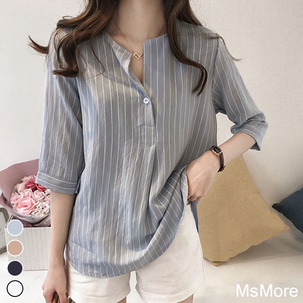 【MsMore】 韓國妙齡佳人好感度知性條紋上衣# 106754