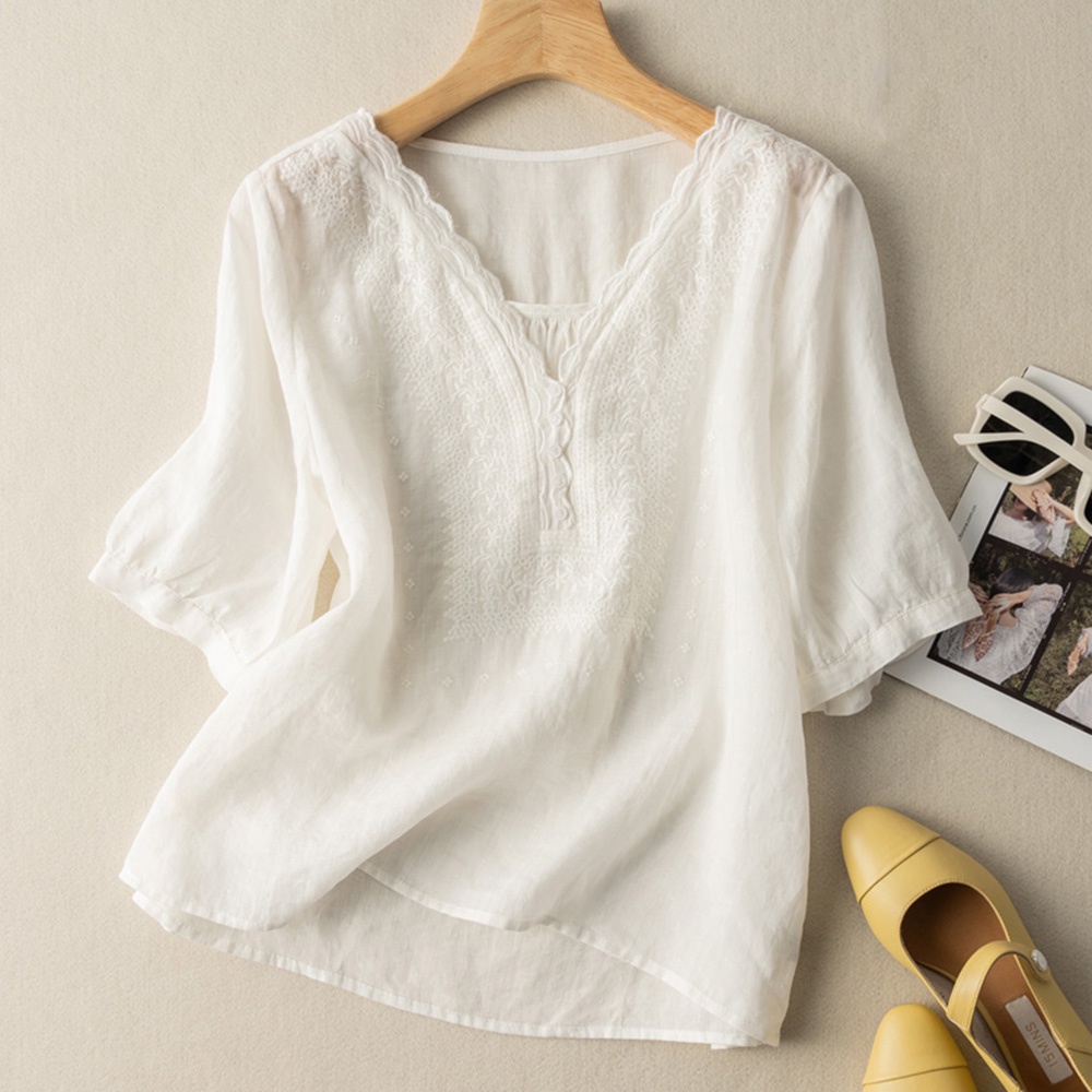 【ACheter】韓版百搭繡花寬鬆上衣#113204現貨+預購(3色)