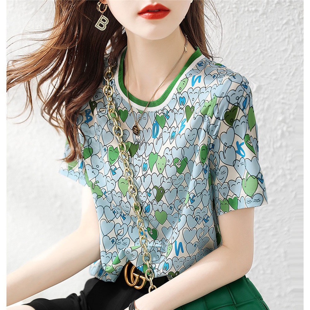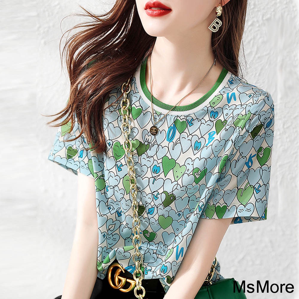 【MsMore】清爽絲質涼感愛心印花上衣#113147現貨+預購(花紋)