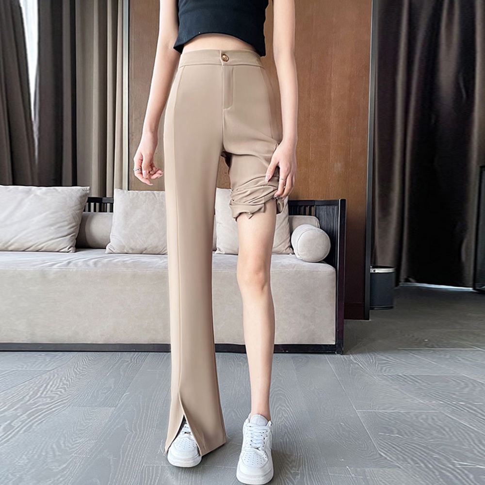 【MsMore】高腰顯瘦涼感啦叭開叉西裝褲#113299現貨+預購(3色)
