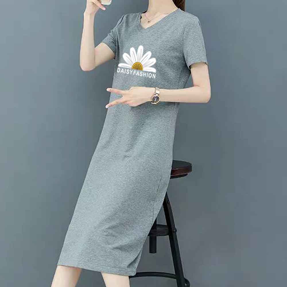【ACheter】太陽花甜美v領棉質休閒長T洋裝109888