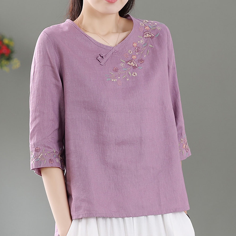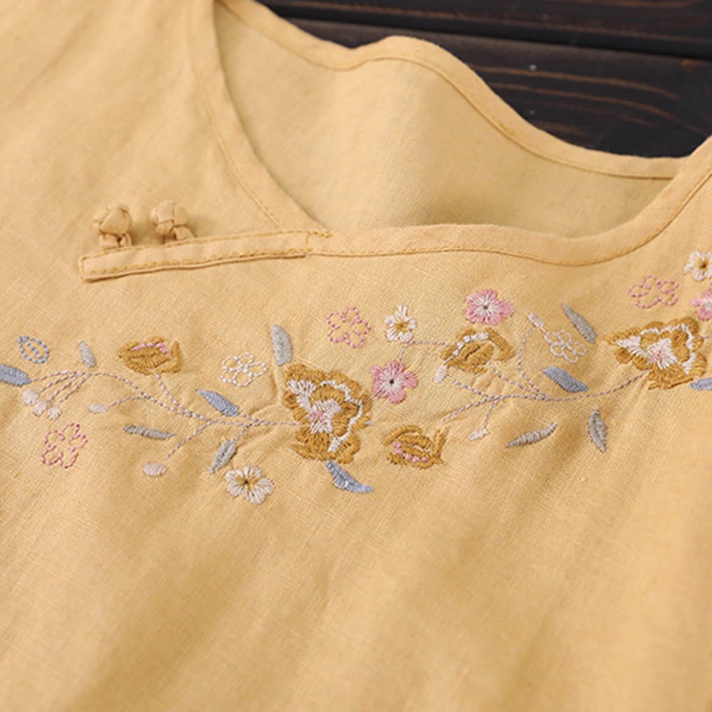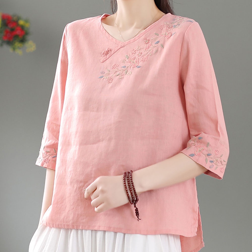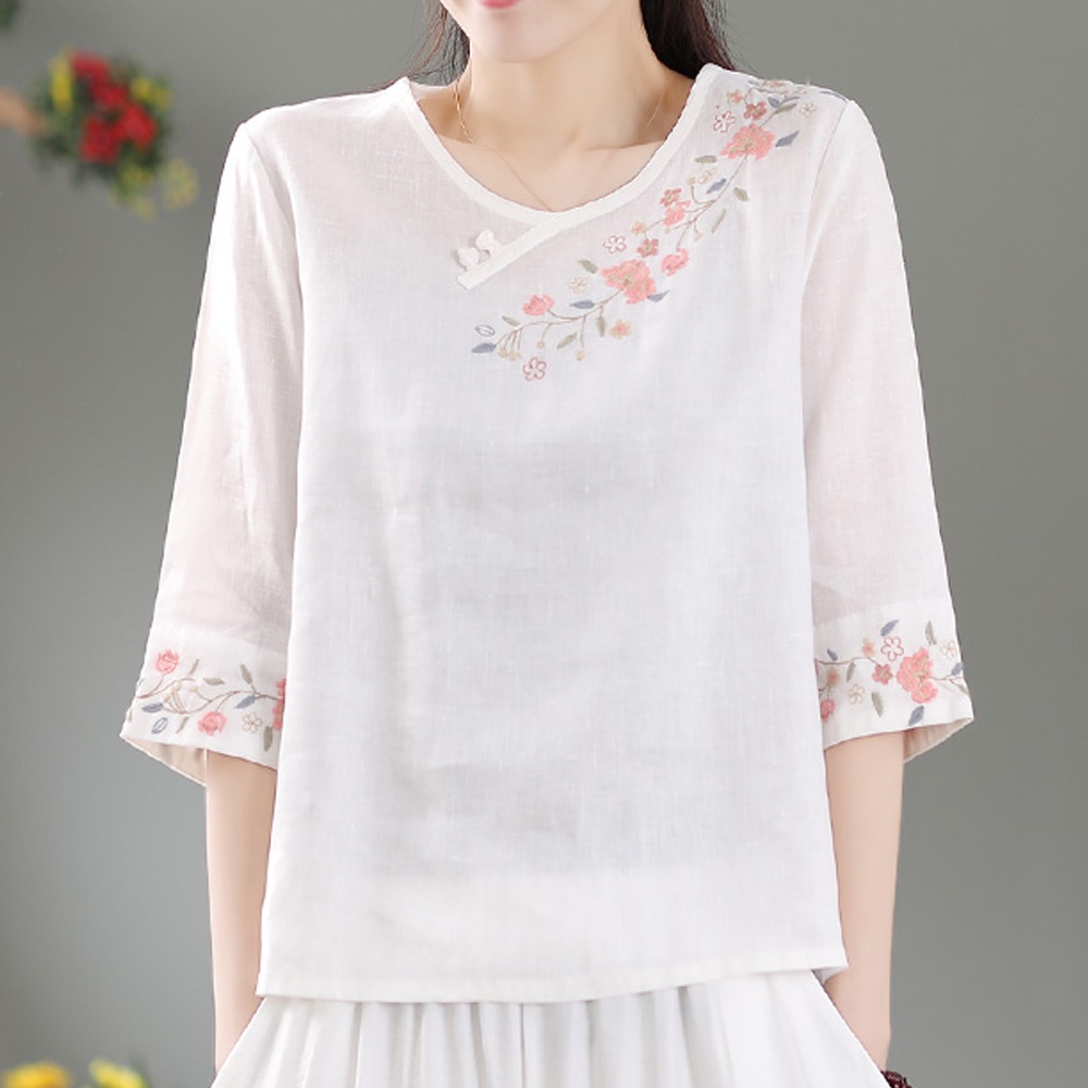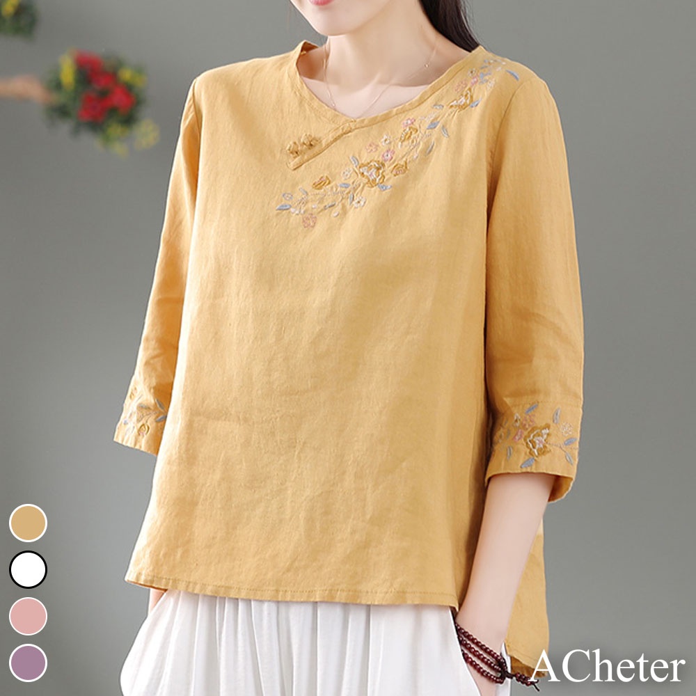 【A.Cheter】復古民族風盤扣刺繡棉麻寬鬆上衣109543
