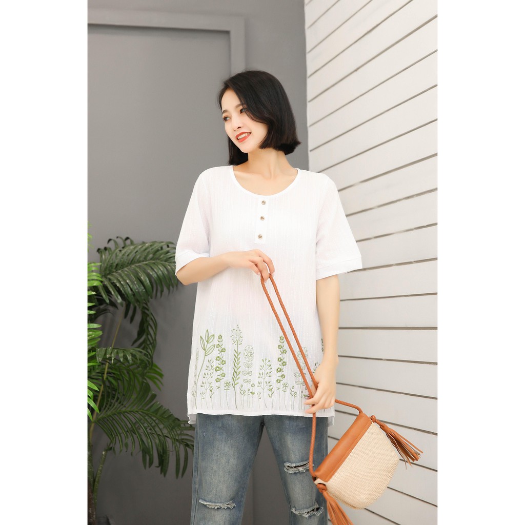 【ACheter】清新簡約花草刺繡棉麻上衣101927