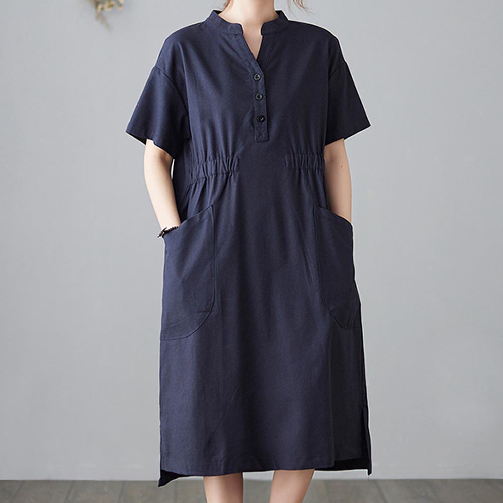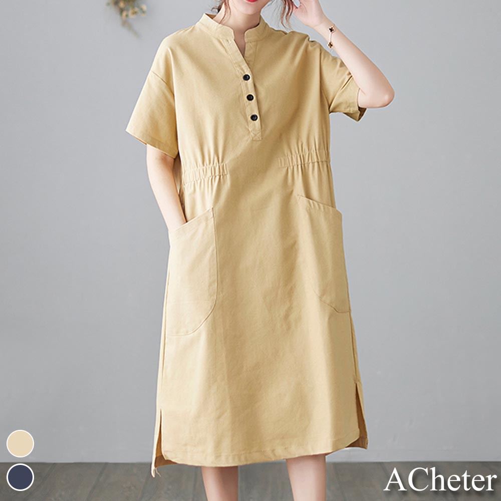【ACheter】福岡自然原味腰皺褶棉麻寬鬆洋裝109526現貨+預購