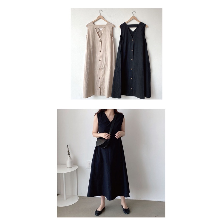【ACheter】韓國chic設計感後背排扣V領無袖背心洋裝109203