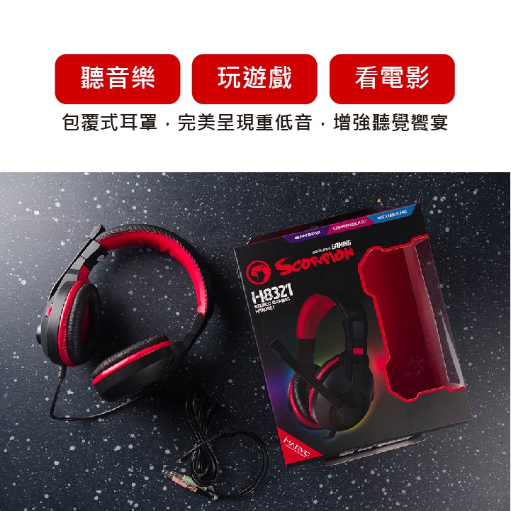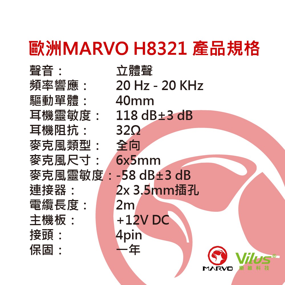 MARVO歐洲魔蠍 H8321P 電競耳機 耳罩式/麥克風/立體聲|樂維科技官方公司貨