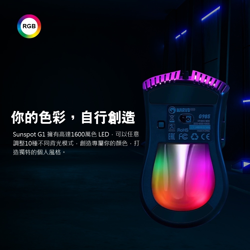 MARVO歐洲魔蠍 G985 RGB電競滑鼠 鏤空底座 7鍵可編程|樂維官方公司貨 ◆福利品◆