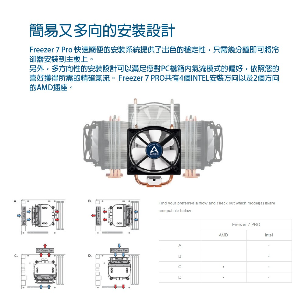 【ARCTIC】塔型CPU散熱器/塔扇 好安裝/多向安裝/AMD與INTEL兼容 Freezer 7 Pro 樂維原廠貨
