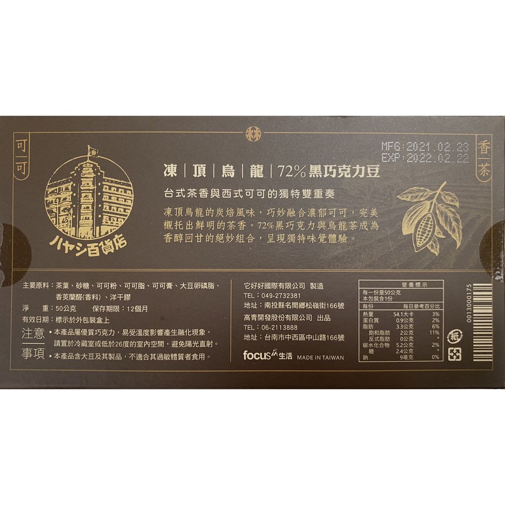 林百貨 HAYASHI 香茶可可 (凍頂烏龍黑巧克力/金萱烏龍白巧克力)