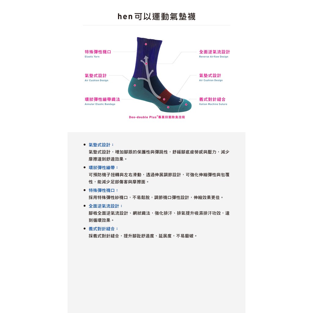 FOOTER|hen可以運動氣墊襪|除臭襪 運動襪 高筒襪 (男-ZH169L/XL)
