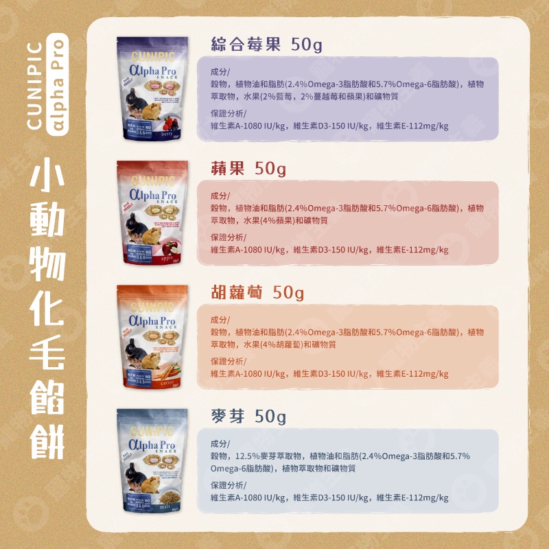 西班牙 CUNIPIC αlpha Pro 小動物化毛餡餅 50g 點心 餅乾 兔子 倉鼠 天竺鼠【寵物主義】