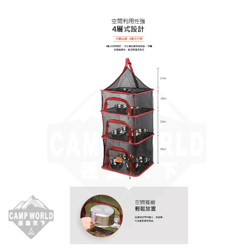 KAZMI KZM 四層方形餐廚籃 餐櫥籃 曬網籃 野營野餐 曬網