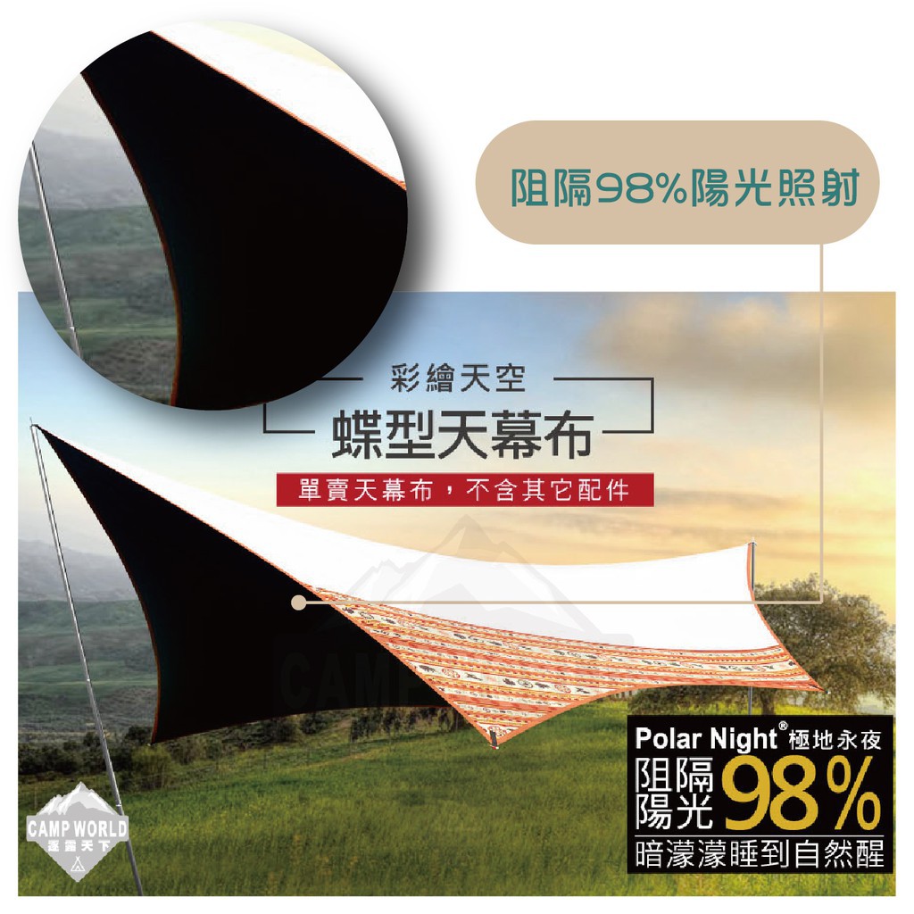 Outdoorbase 彩繪天空 蝶翼月光白天幕布 黑黑帳 Polarnight 天幕 蝶型天幕