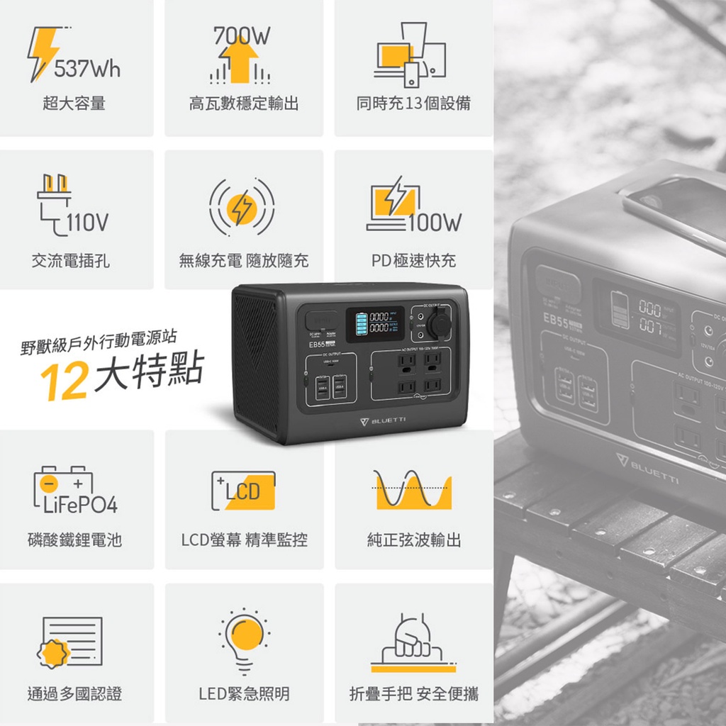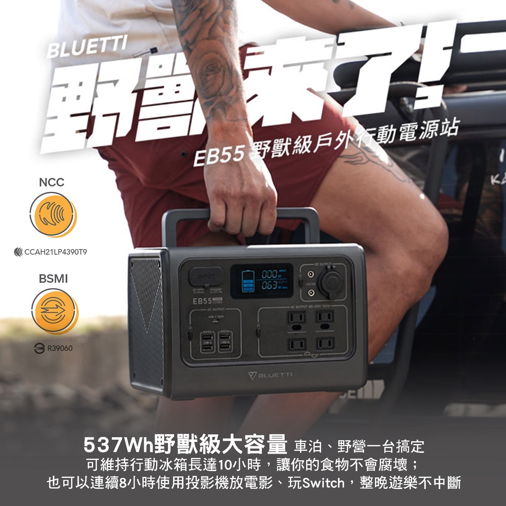 BLUETTI EB55 野獸級戶外充電站 168,000mAh 發電機 700W 露營 R39060 行動電源站 露營