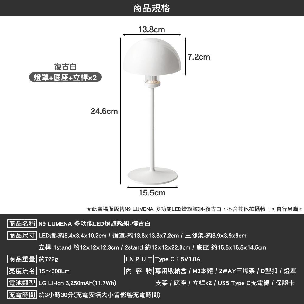 N9 LUMENA 多功能LED燈旗艦組 復古白 桌燈 展示燈 戶外 露營逐露天下