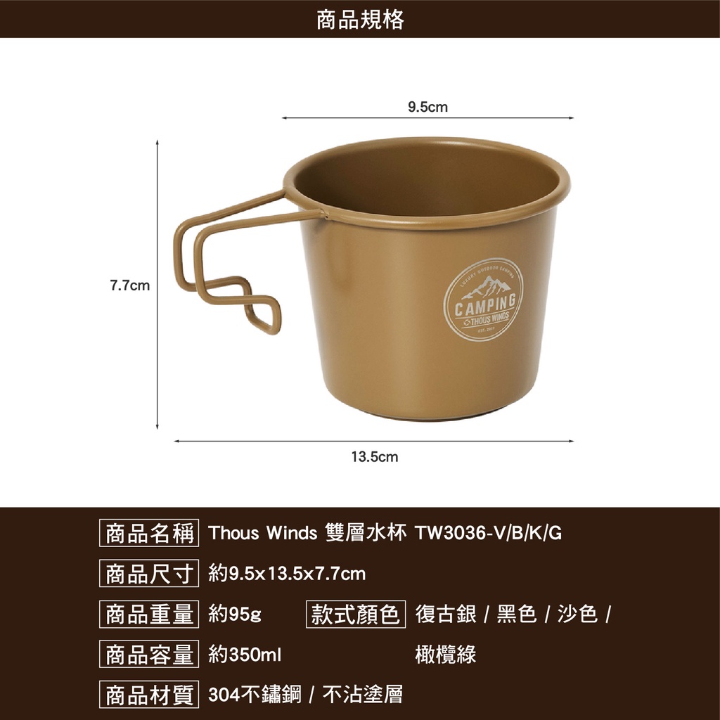 Thous Winds 不鏽鋼雪拉杯350ml TW3005 雪拉杯 杯子 隔熱杯 露營杯 露營