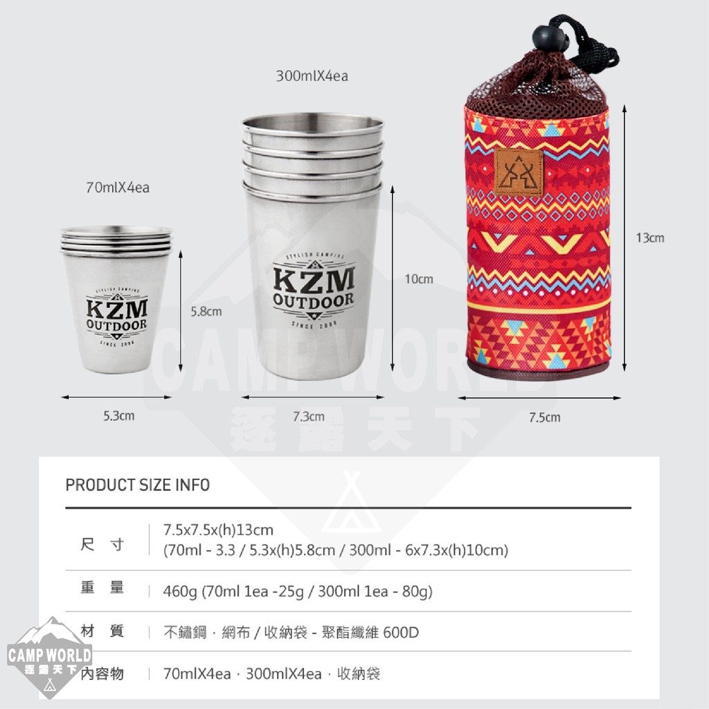 KAZMI KZM 經典民族風不鏽鋼套杯8件組(紅色) 茶杯