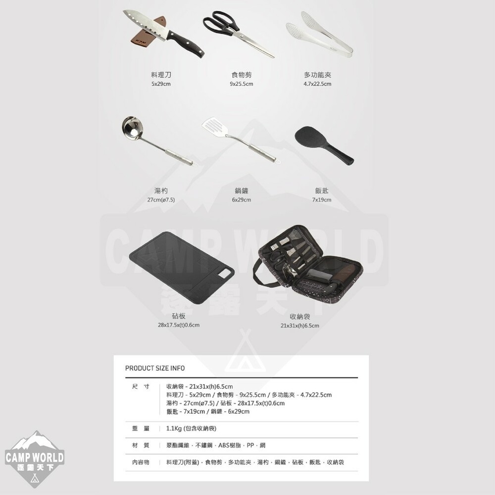 KAZMI KZM 彩繪民族風廚房用具8件組(黑色) 露營廚具 廚具 餐具包逐露天下