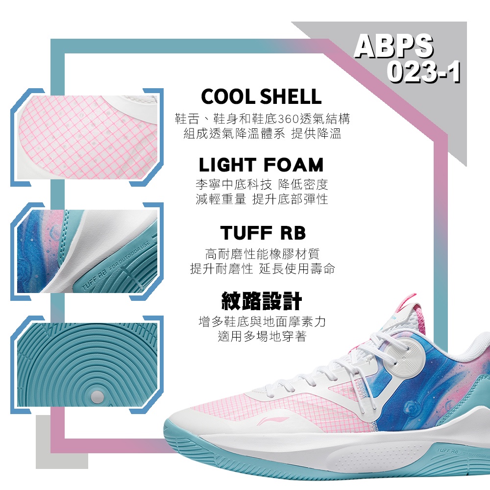 【LI-NING 李寧】音速 Team Low 男子 透氣 清涼 籃球鞋 標準白/桃木粉 ABPS023-1