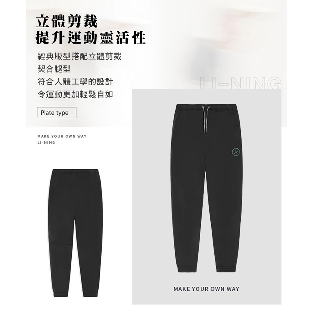 【LI-NING 李寧】韋德 紅標 男子 反光 束口 運動長褲 黑色 AYKS385-1