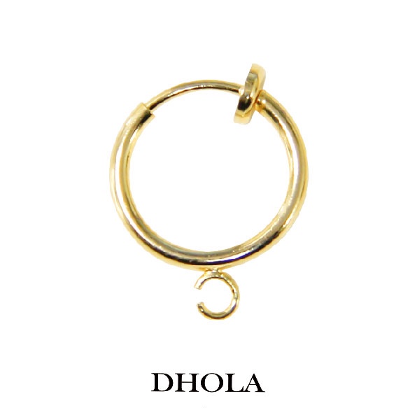 DHOLA|【金色_吊耳彈簧耳環】吊耳彈簧耳環 夾式耳環 圓形耳環 防痛墊片 台灣電鍍 朵拉手藝材料店