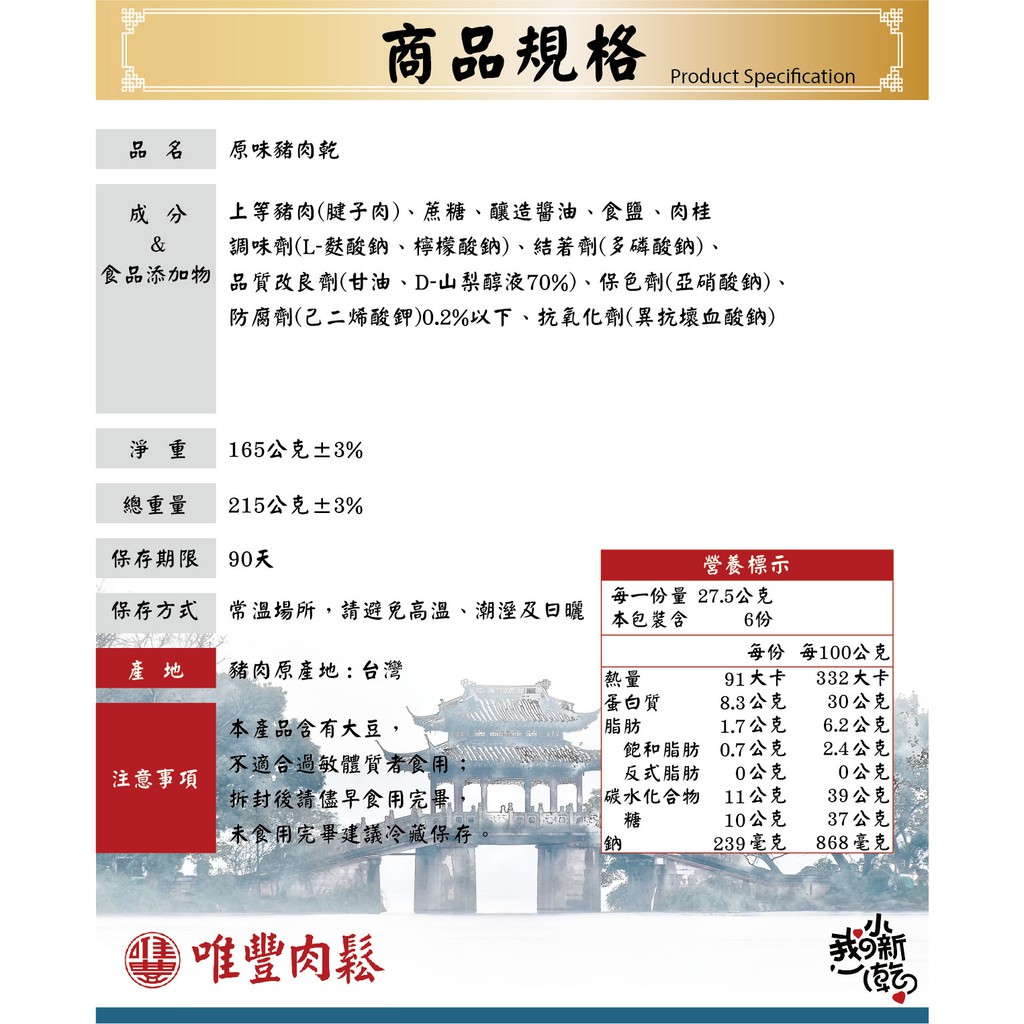 【唯豐-我的小新乾】原味豬肉乾165g