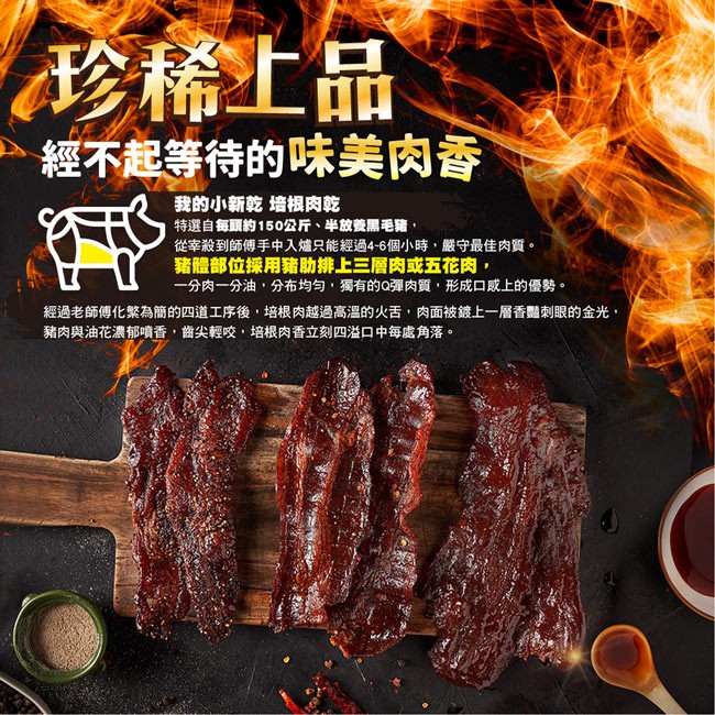 【唯豐-我的小新乾】手工炙燒培根肉乾9入禮盒組-蜜汁/黑胡椒/麻辣任選