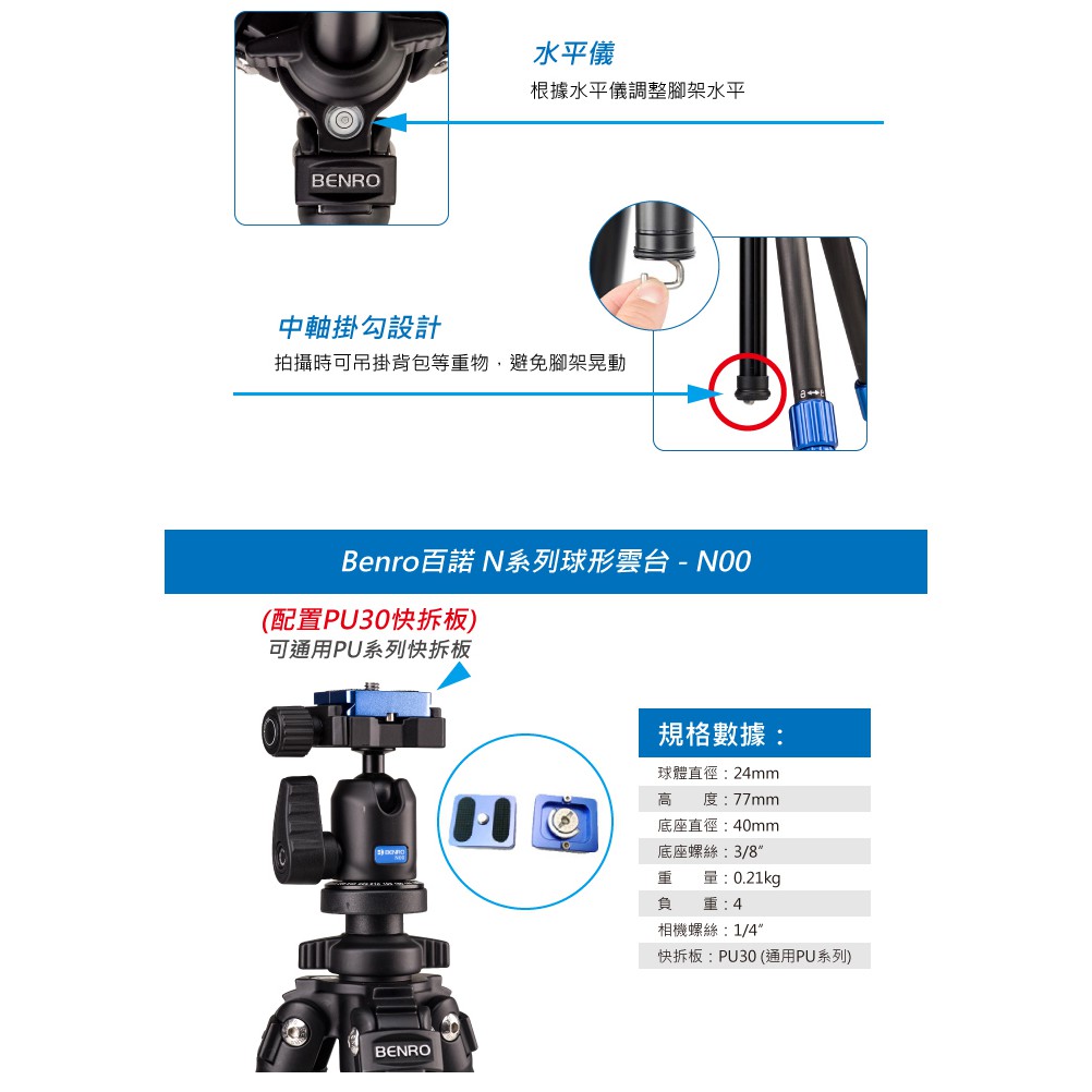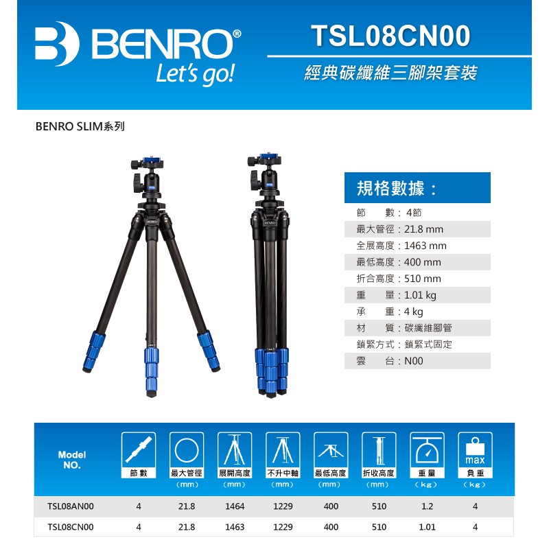 BENRO百諾 TSL08CN00 經典碳纖維三腳架套裝