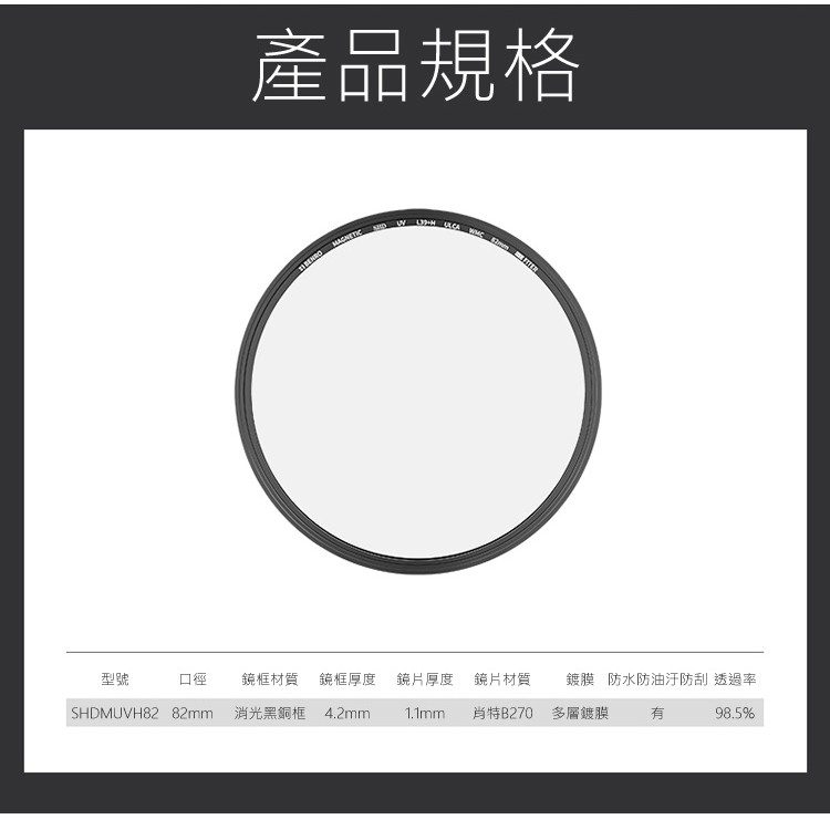 BENRO百諾 82mm SHDMUVH82 磁吸式鋼化UV保護鏡