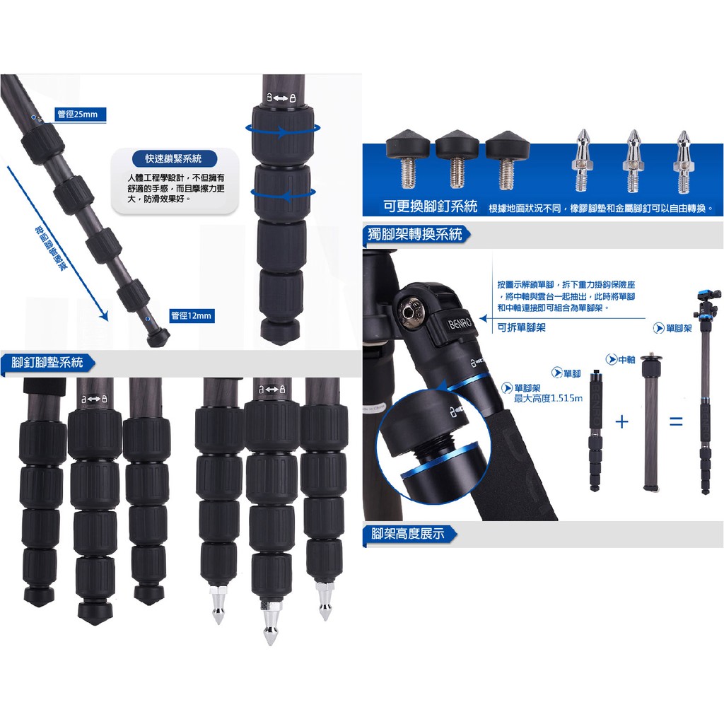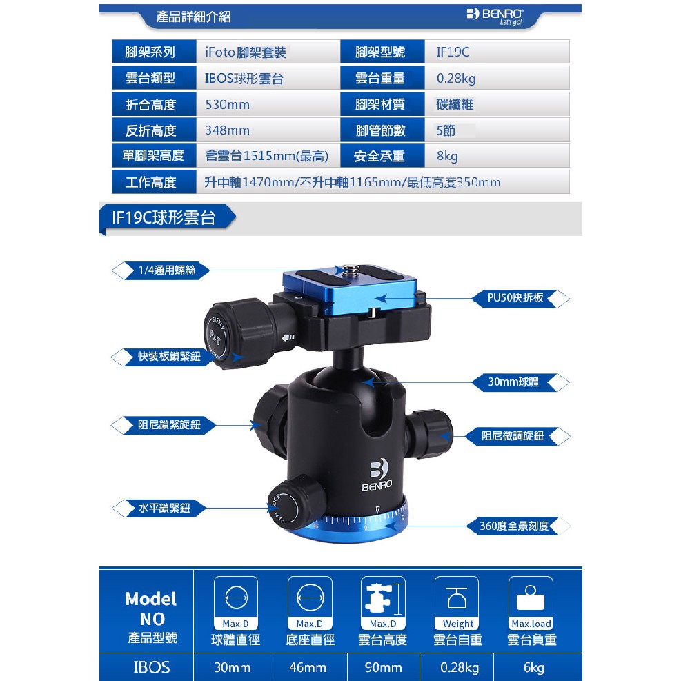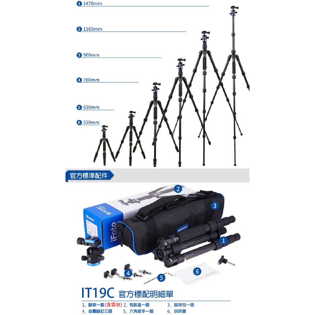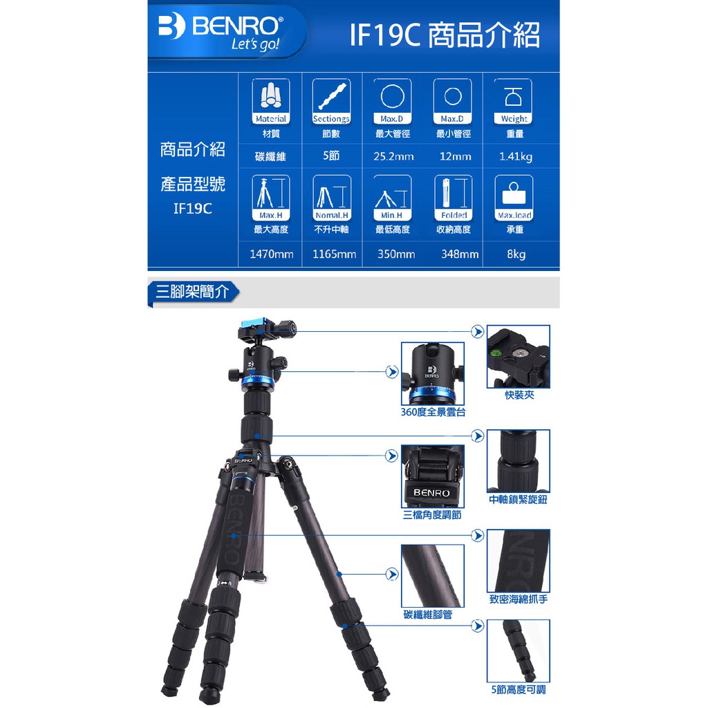 BENRO百諾 碳纖維IF19C三腳架單反相機攝影腳架套裝